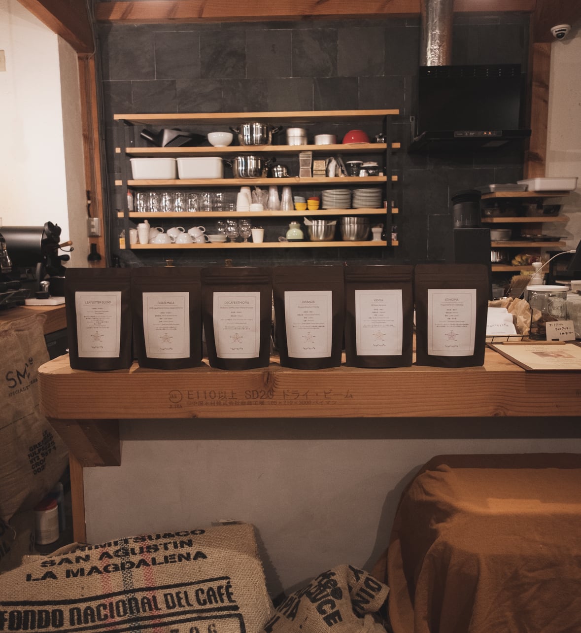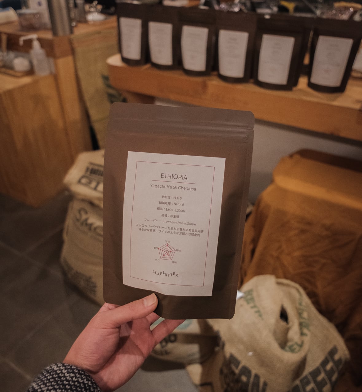 コーヒー豆のパッケージをリニューアルしました。ブラウンのパッケージはLEAFLETTERの店内装飾、無垢材のカウンターやテーブル雑貨、観葉植物をイメージしました。白いシールは漆喰を連想させ、洗練されたデザインに仕上がっています。